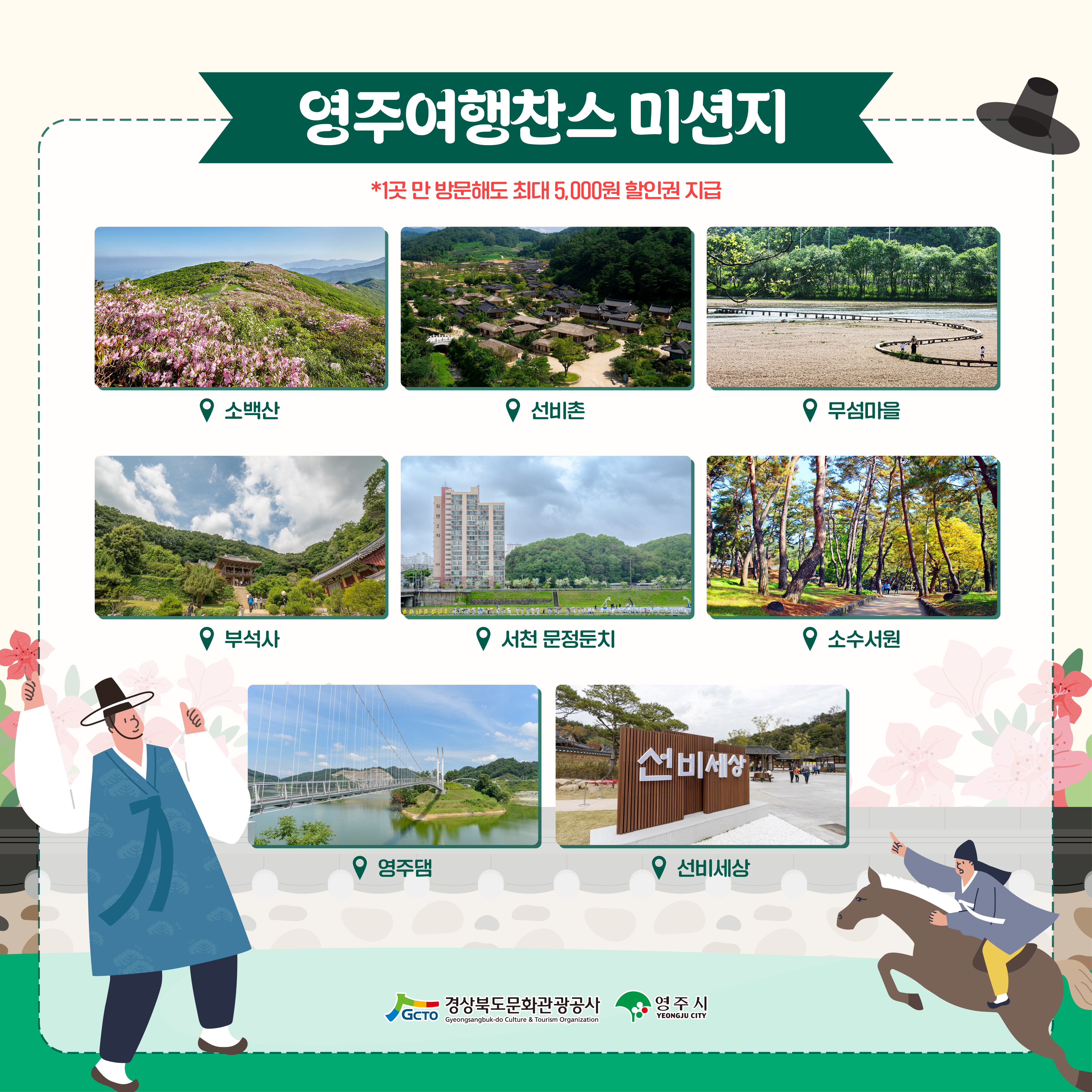 STEP. 1 영주 8개 여행지를 방문 (*1곳 만 방문해도 최대 5,000원 할인권 지급)